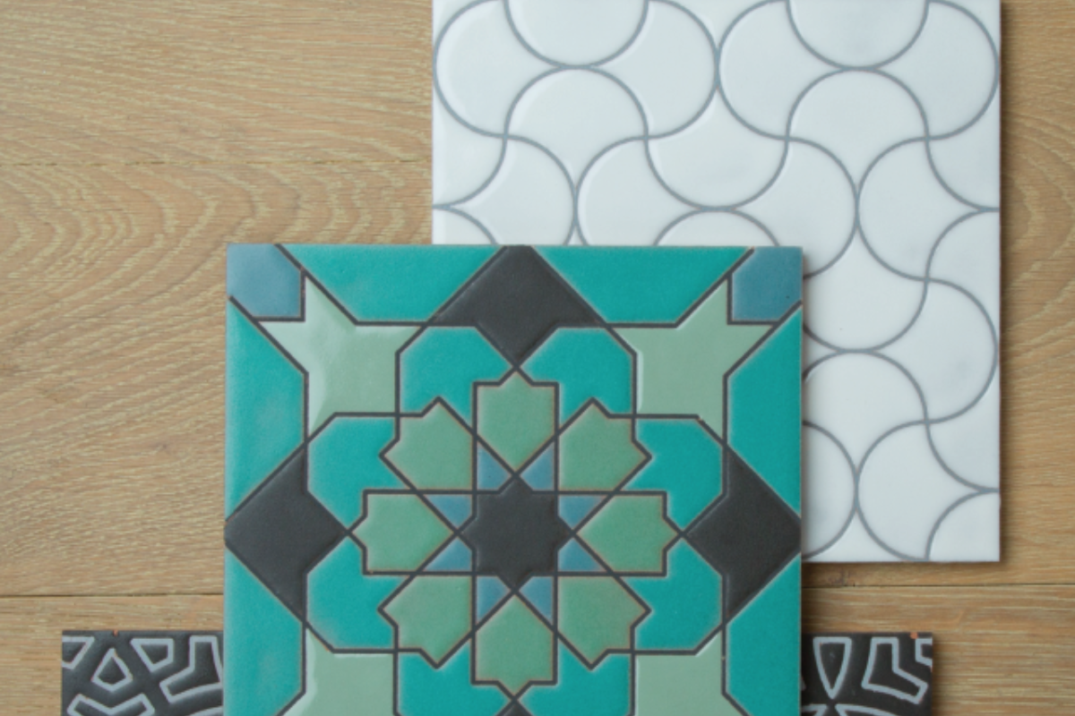 These new designs come in a variety of richly saturated hues ranging from cool grays to vibrant turquoise, ripe red and lustrous black. Try pairing them with a solid offset field tile such as Feldspar Gloss, Pine Grove, Silver Lilac, and Carbon.