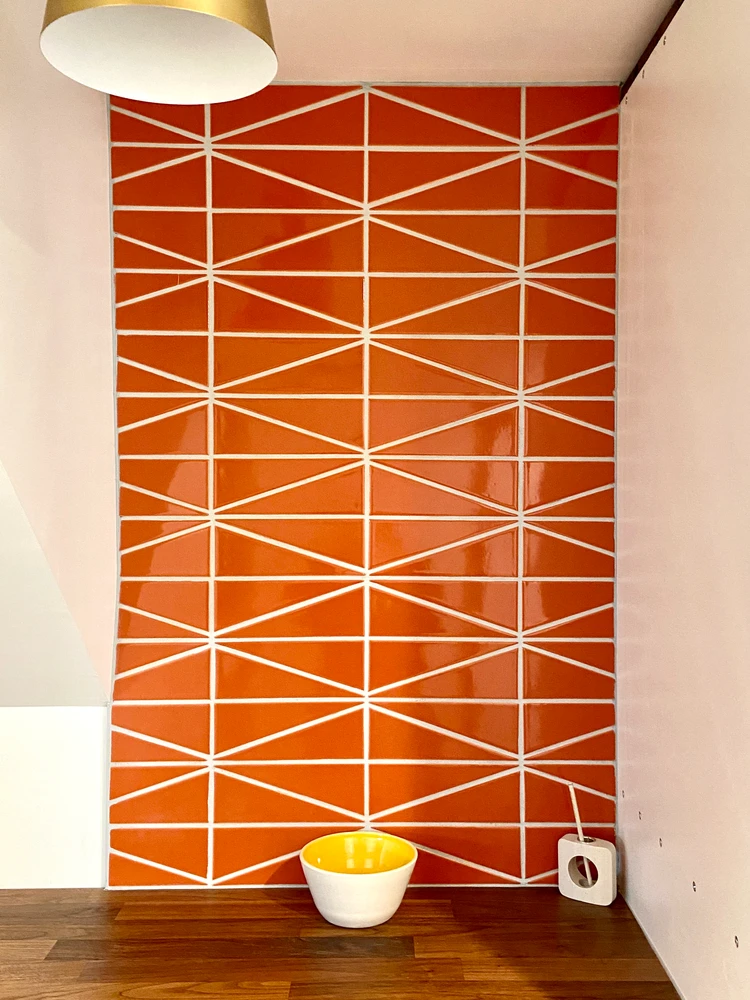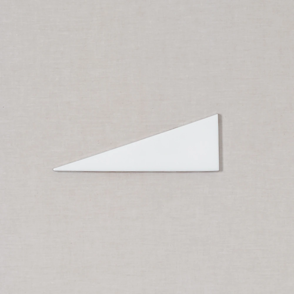 Whether it’s in a fresh white finish or a multicolored palette, our Right Scalene Triangle Tile is impactful yet timeless. Arranged vertically and this geometric tile will add height and length to your space, or go horizontal for a more settled but no less dynamic look. Cut to order in California. Please talk to a rep if you would like to order a Left Scalene Triangle.